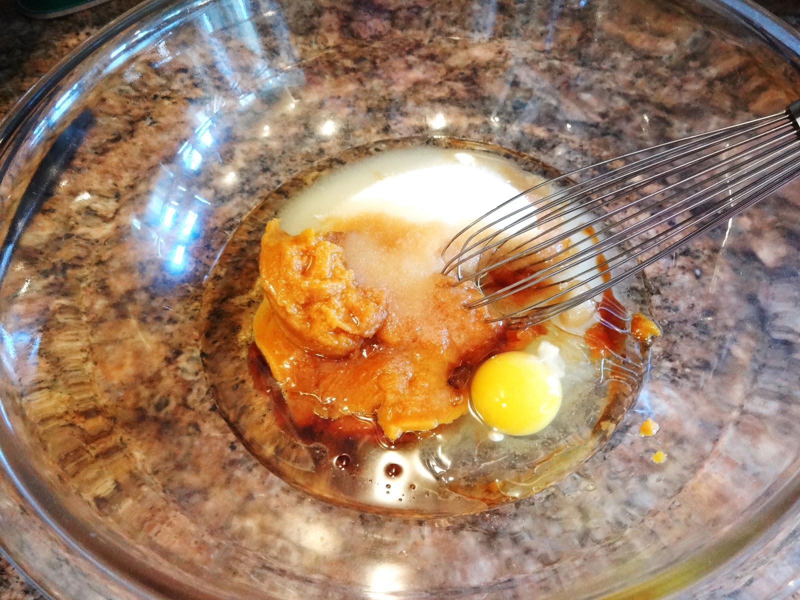 Don't forget that the recipe calls for 1 Tablespoon vanilla. I love vanilla so I went ahead and put it in. I was a bit concerned that it was a typo, because that seemed like a lot, but it tasted great, so go for it. Add the sugar and whisk that in. Whisk vigorously to dissolve all the sugar.